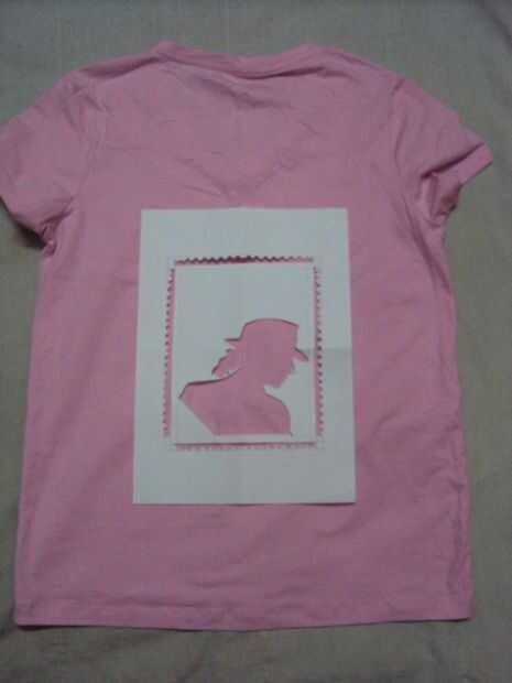 Coloque la plantilla en la camiseta. Llene el espacio con el color blanco con un pincel (también se puede utilizar una esponja).