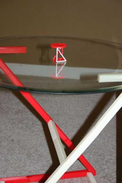 se trata de una mesa final, de componente impreso "latas".  Usted puede tener una nueva tabla todos los días cambiando la posición de los colores o patrones en las "latas".  Luces del LED o detectores de movimiento pueden colocarse den