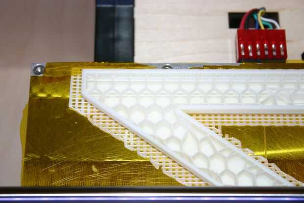 Convencido de que es posible, escala hasta piezas mas grandes. La estructura casi hueca (10 por ciento de llenado en este caso), reduce el contenido de plástico conservando fuerza razonable.