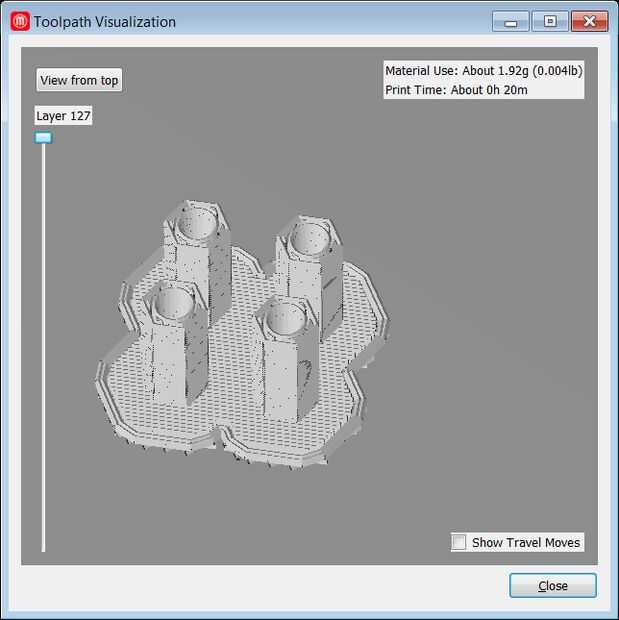 - Compruebe el tiempo y el total de material del modelo