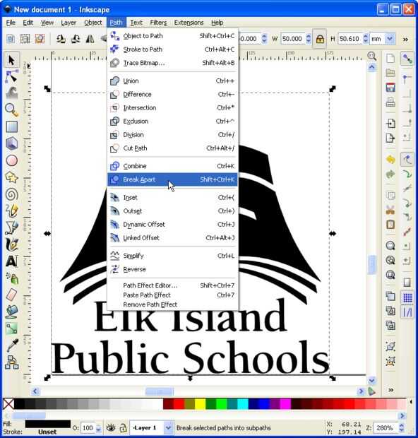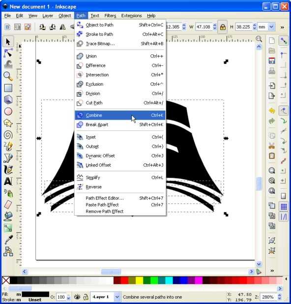 4. Mueva el objeto de trazado del camino y borrar el mapa de bits original. Volver el objeto de trazado en la parte inferior izquierda (0, 0).