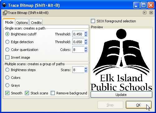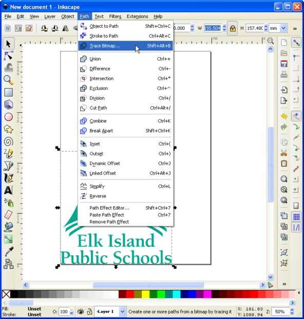 2. Haga clic en su logo, luego en el menú trazado elegir Trazar mapa de bits...
