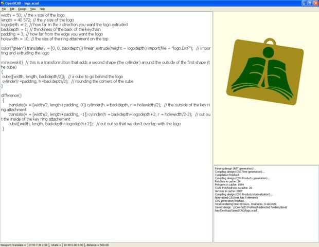 Ejecutar OpenSCAD y pegue el código siguiente (o descargar el archivo adjunto logo.scad).
