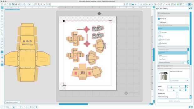 Seleccionar el material apropiado de los medios de comunicación lista de silueta corte Menú > ajustar en consecuencia la hoja > haga clic en enviar a silueta.