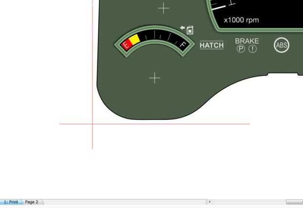 Como se puede ver en las capturas de pantalla, añadir un patrón externo de la Cruz, esta marca de referencia es mayor a 4 esquinas. Como con muchas cortadoras láser, es rayita vector arte y RGB rojo. El color debe ser diferente para las marcas de referencia de lo que es para el patrón de corte final.