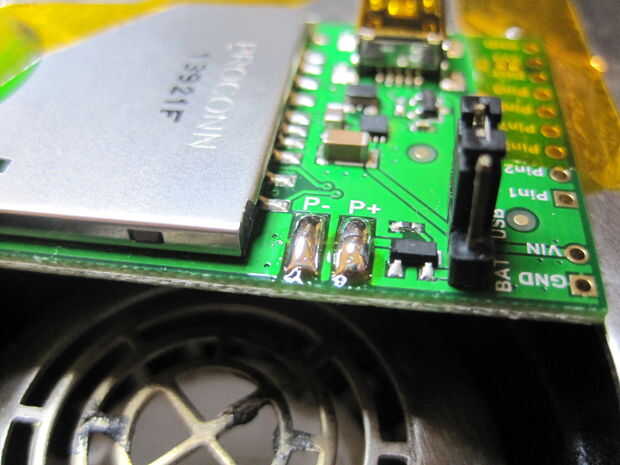 - Establecer al puente en su imp eléctrico tablero de arranque para conectar "BAT" y el pin del centro de tres pines. Si tu tabla no tiene un encabezado poblado, puede utilizar un pequeño trozo de alambre para conectar el pad del centro de las tres potencia botones select con el botón marcado "BAT"