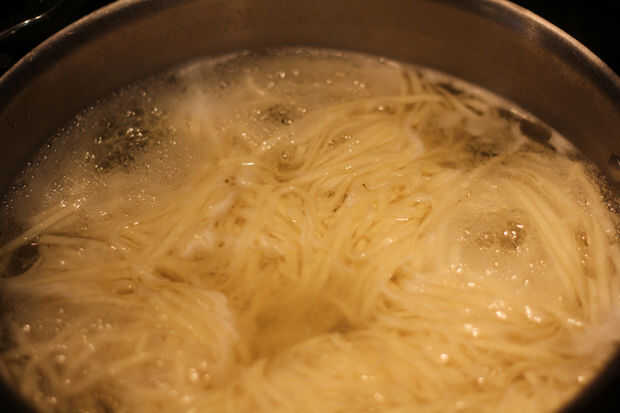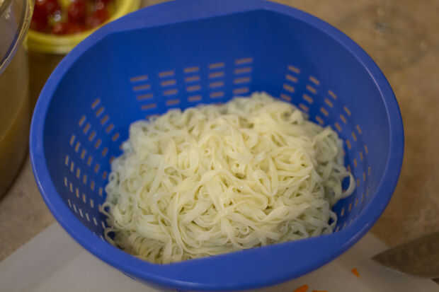 Los fideos había cocinado según las instrucciones del paquete, les enjuagar y apártelas para drenar.
