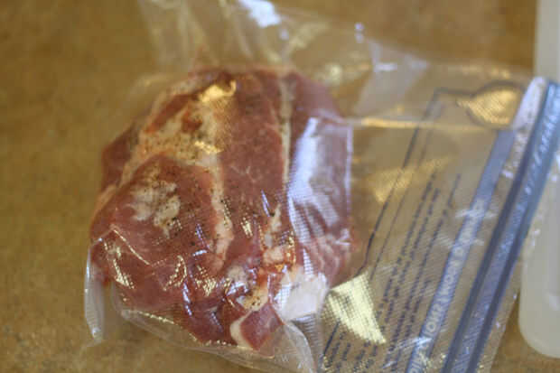 También tenía una Paletilla de cerdo deshuesada que salado y sazonado con pimienta y cocidos cinco horas a 140F en mi cheapo sous vide rig. No conseguí demasiado loco con los condimentos porque sabía que sólo un poco se utilizaría para la sopa. El resto fue detrás en el sous vide en una temperatura más alta para hacer un cerdo tirado para bocadillos.