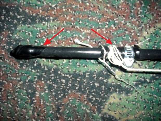 Corté mis polos grafito a 28,5 pulgadas. Las barras ellos mismos son 1/4 de pulgada, y utilicé 2. Hacía escalonadas para equilibrar la tensión. Como dije, esta ballesta se hizo con lo que tenía disponible. Si usted fuera a utilizar bastones de grafito, no recomiendo esto si puede ayudar. En lugar de otro corte 2 polos uniformemente a unos 3 pies, luego use las pinzas O para conectarlos. Después de esto envolverlos con eléctrica o cinta aislante.