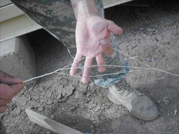 Ejecute la cadena con el extremo opuesto, alrededor del lazo y funcionar detrás otra vez. Hacer esto 3 o 4 veces hasta que al final de su cuerda de nylon en el extremo opuesto de donde empezó y asegúrese de dejar aproximadamente 8 pulgadas de holgura. Si parece que tienes 3 o 4 hilos de cable.