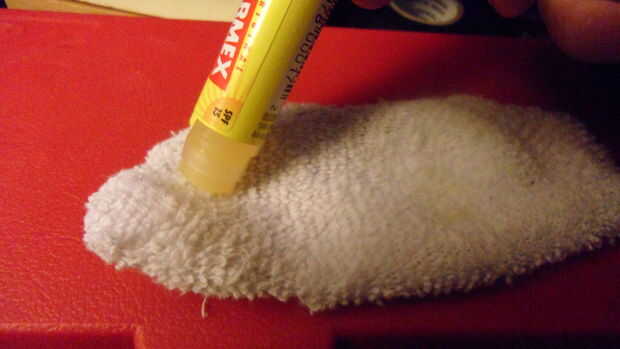 1) así, en primer lugar, usted necesita cubrir la "mecha" con una gruesa capa de bálsamo para los labios. Dejar una sección corta en la parte superior sin cubierta