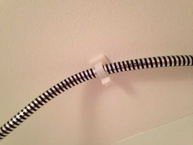 2. a medida que se ejecuta en el techo, asegúrese de quitar el respaldo en las bridas y palillo a la pared. (si el pegamento es demasiado débil, utilice un adhesivo resistente al agua).