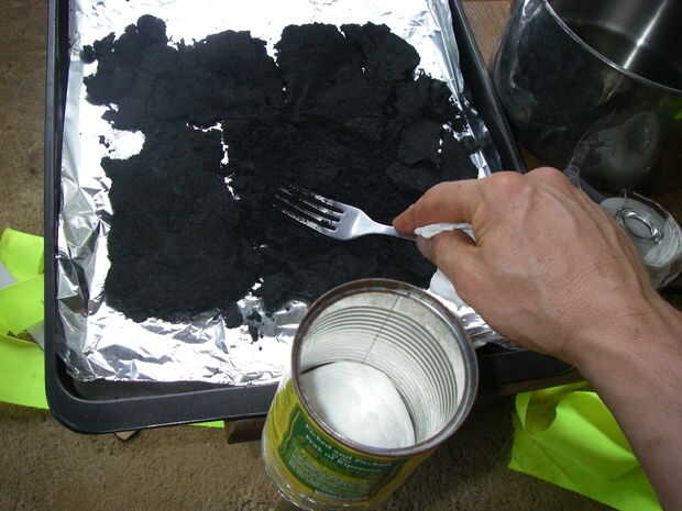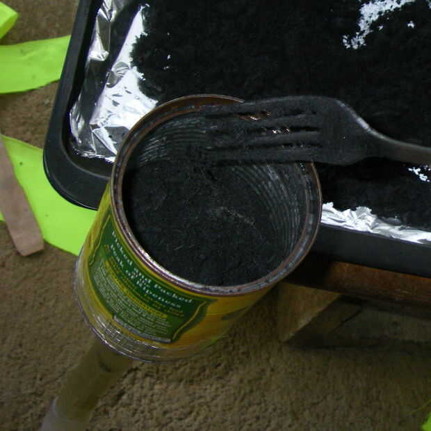 me lleno la lata con carbón hasta que fue casi tan alto como el cartucho de gas máscara más largo que he visto.