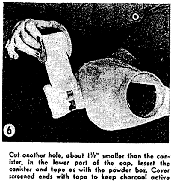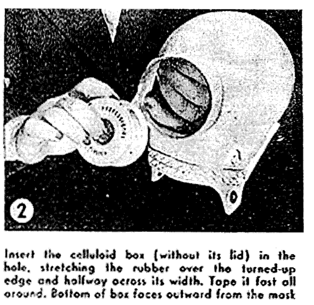 Luego la empujó en un agujero en la máscara y sellada sobre con cinta adhesiva.