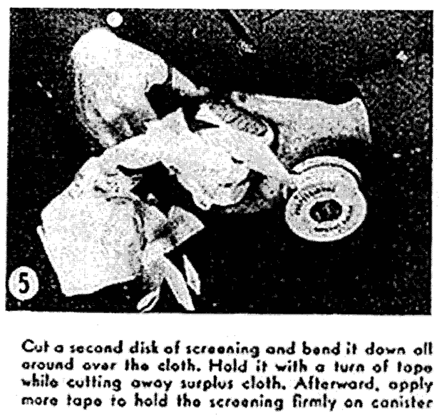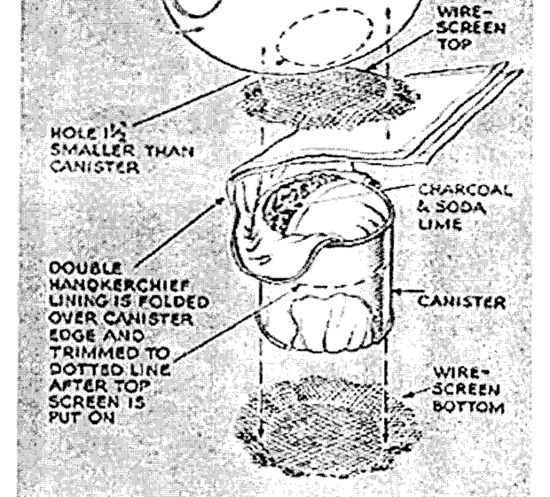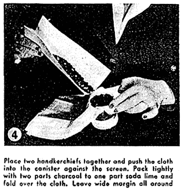 La mezcla de carbón/soda-lime es envuelto en dos capas de pañuelo y envasada en la lata.