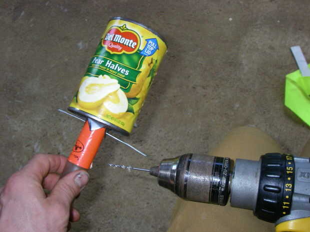 Asegúrese de que el tubo no sobresalga en la lata. Perfore un agujero a través de las aletas puede y al final del tubo de snorkel. Inserte un alambre por los agujeros. Doblarse los extremos del alambre. La Asamblea se siente bastante segura.