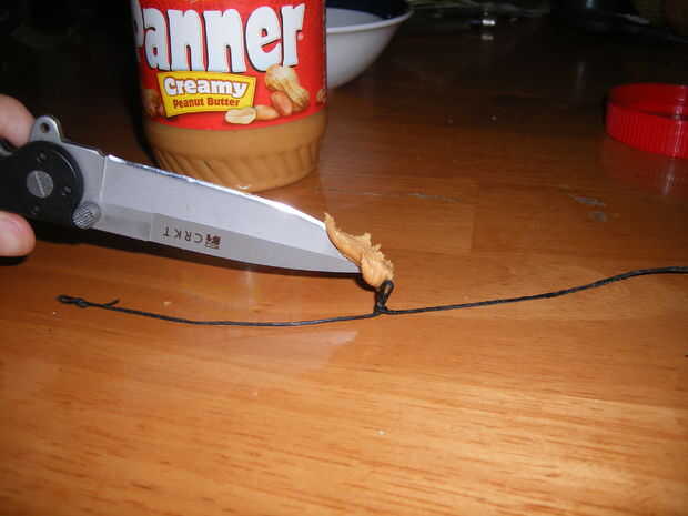 El cebo debe colocarse de manera que el lazo y el cebo se atranquen. Ratones tienden a agarrar a lo que comen y luego sentarse sobre sus pies traseros y munch, parecido a una ardilla. Por lo tanto, desea eso lazo del cebo para ser pegado para arriba tanto como sea posible, para que cuando él agarra la carnada, tira de la cadena.
