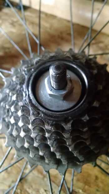 La rueda gira sorprendentemente sin problemas, pero por supuesto este hack probablemente no va a durar mucho tiempo puesto que las arandelas y interior de la rueda libre no están diseñados para funcionar como rodamientos de bolas.