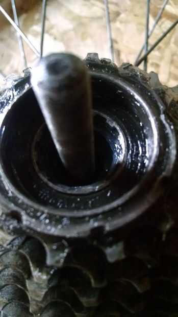 La rueda trasera de mi bici se convirtió recientemente suelto y tambaleante. He quitado la rueda libre y encontró que la taza del rodamiento de bolitas rompió totalmente lejos del cubo, por lo que el árbol era enteramente sin soporte en un lado.