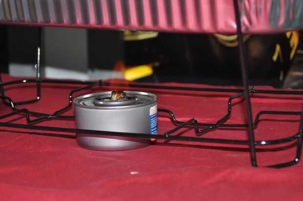 Sin embargo, el otro recurso de que Qdoba tenía era ollas de aluminio y Sterno alcohol gel quemadores.