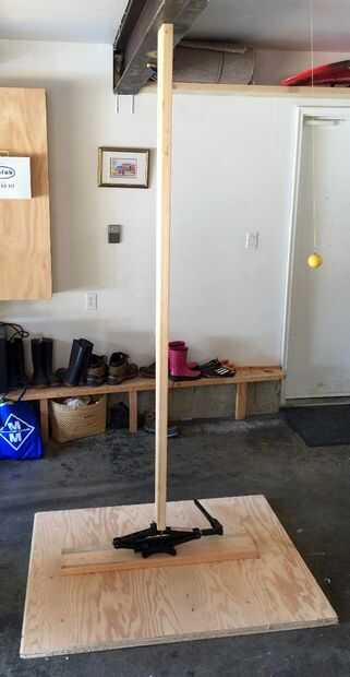 Un poco de madera, un haz de arriba y un gato del coche puede aplicar mucha presión a la baja si no desea cargar con pesos alrededor. Sólo asegúrese de que todo está alineado bien y que no exagere. Recuerda que un gato de coche está diseñado para ejercer toneladas (literalmente) de la fuerza hercúleas cantidades de apalancamiento tiene a su disposición. Distribuir esta fuerza sobre el área más grande posible mediante el uso de un trozo grande de madera.