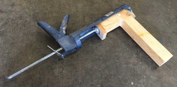 Pistolas para calafatear parecerse mucho a una pinza con una mano y trabajar como una, también. Usar como-es, o mejor, con algún sacrificio piezas de madera para evitar que las mordazas de estropear la pieza de trabajo.