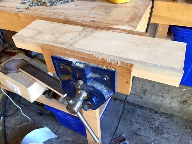 Si usted tiene un tornillo de banco, también tiene un práctico - aunque fijo - abrazadera. Tiene la característica agradable de tener mandíbulas muy grandes. Me doy cuenta que esto es una obviedad, pero lo incluyo aquí porque a menudo se me olvida este yo - principalmente utilizo mi tornillo de banco para sujetar cosas mientras estoy trabajando en ellos con herramientas de mano, así no siempre vienen a la mente cuando estoy buscando algo amarrar con.