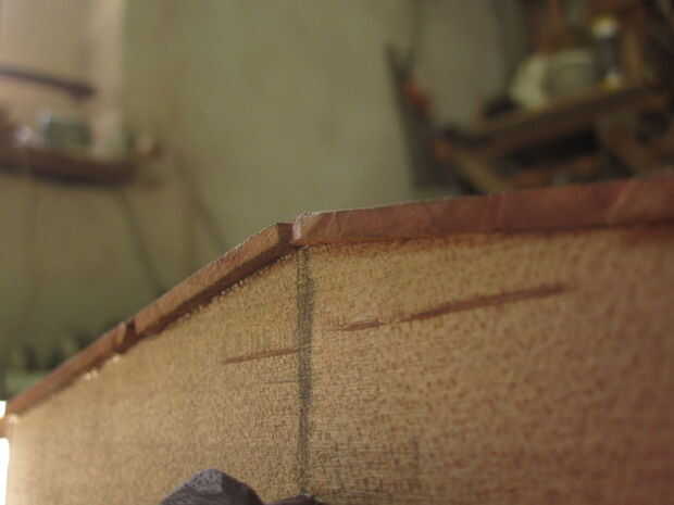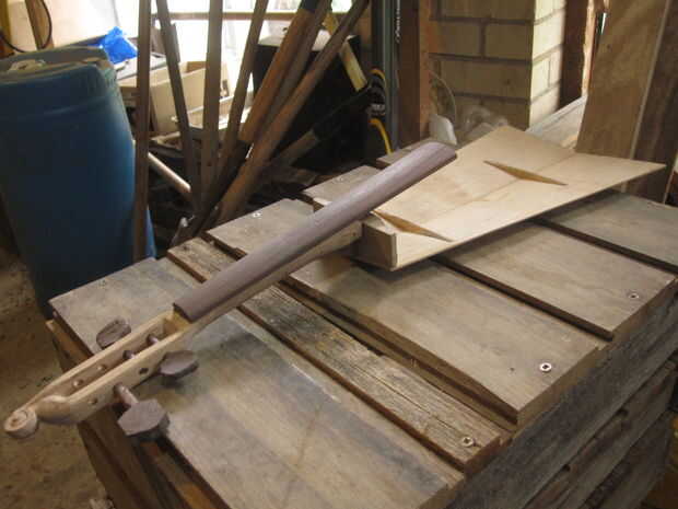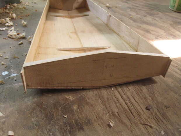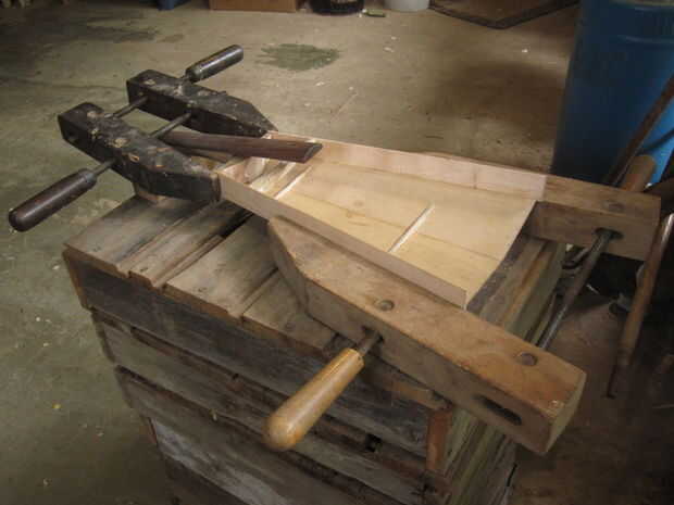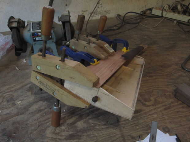 Había planeado los lados al igual que la parte de atrás. Sujeta un extremo a la banca con una pinza y cepillada lejos de ella. Afila tu avión para reducir el arranque. Usé las abrazaderas para sostener los lados en lugar mientras que el conjunto de cola.