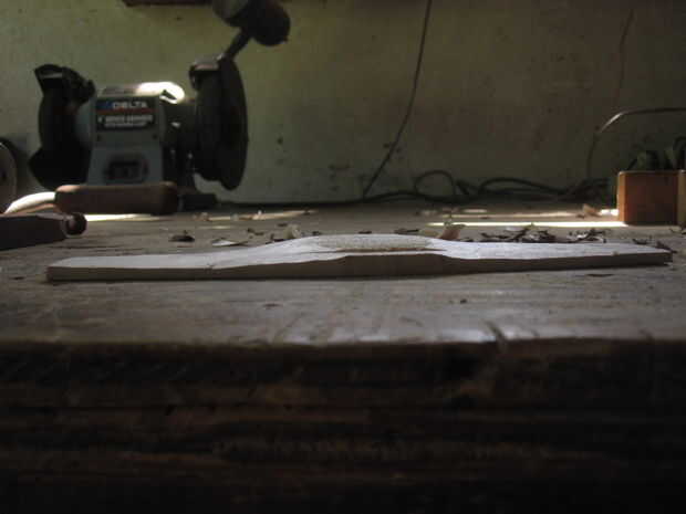 La cara de la caja fue hecha de cedro rojo occidental. Se redujo de un tablero más grueso de la misma manera que la parte de atrás. La madera no plano bien debido a inconsistencias en el grano, usé papel de lija gruesa para reducir su espesor. Lo conseguí a punto 3/32" de espesor.