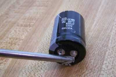 La foto muestra uno de los cuatro condensadores de micro faradio volt 220 820 dentro de mi vieja fuente de alimentación de computadora. Estos condensadores recargarse mucho después de que último fue aplicado la corriente alterna a la fuente de alimentación. Gurú del PC Scott Mueller (