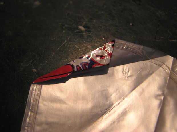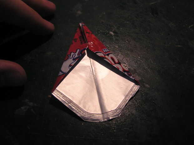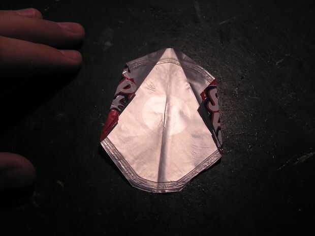 Una vez desplegado, tomar las esquinas y doblar luego a las líneas de doblado anteriormente, dos veces. Precisión no es realmente un gran problema para ello...