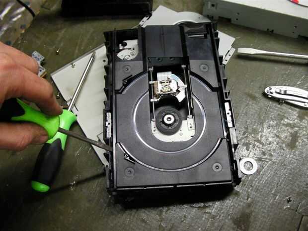 En la unidad de CD, quitar cada tornillo que consulte. Generalmente se permitirá la cubierta salen. Todavía puede haber algunos clips que. Un poco alzaprimar generalmente será derrotarlos y permitir el acceso. Seguir adelante hasta que pueda ver el mecanismo de enfoque. Recomiendo dejarlo en su alojamiento y el transporte. Si no, tendrás que montar en algo.