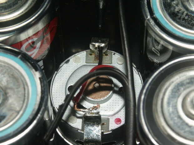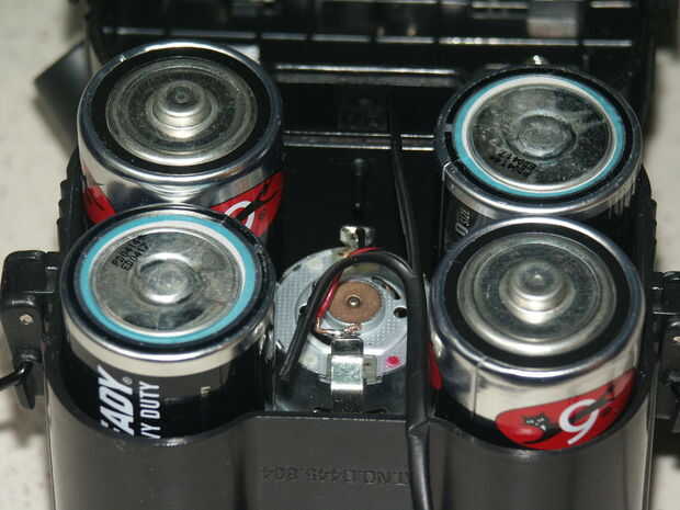 Mirando en el compartimento, puede ver los terminales de la batería. Sólo tienes que seguir los que hacia el motor para determinar el + y - del motor.