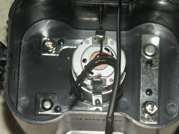Luego, cortar cualquier conector está en el otro extremo de la verruga de la pared, dejando como mucho de alambre en la verruga de la pared como sea posible y luego tira de los cables. Mina eran color negro y rojo, así que fue fácil, pero si no puede probar los cables con un multímetro. Entonces, solo soldar los cables en el motor + a + y - a-.
