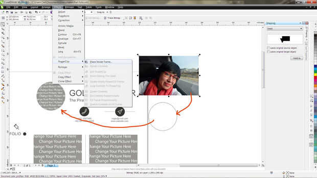 4. ahora la foto se inserta al círculo, si la navegación a través de la imagen hay es extra herramientas aparecerá para modificar si es necesario