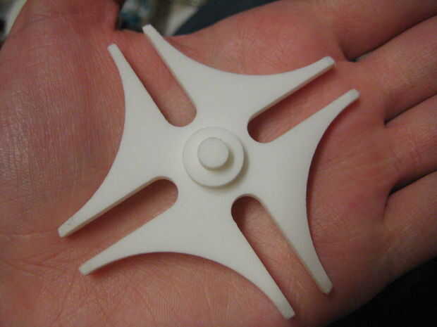 Este paso era genial, había conocido sobre la impresión 3D por un tiempo pero esta es la primera vez que realmente tuve partes impresas. Fui a la Página Web de Shapeways: http://www.shapeways.com/. Ofrecen una amplia gama de materiales, que van desde el plástico blanco, que es de $1,50 un centímetro cúbico, de plata, que es de $20.00 a cm ^ 3. Fui con el plástico blanco y trató de minimizar el volumen lo más posible, cortando material posible de la parte posterior de las partes. En la parte inferior de la velocidad de conducción puede ver que corta material lejos del cuerpo y diseñé con algunos agujeros en algunas piezas cilíndricas de la marcha. He diseñado lo que había por lo menos 1/8" de material por todas partes, pero probablemente podría haber corto hasta 3/32" o 1/16". Por otra parte, que poco moteada en la parte superior el equipo de conducción solía ser un mango pequeño, pero desprendió cuando la tenía en una bolsa de comprobar en un avión. En retrospectiva, yo probablemente debería han hecho manejar mucho más grueso y más bajo, tal vez 1/4" de diámetro y 1/4" alto. El controlador de costos de $18,81 y la parte, que se llama la Cruz de Malta allí, cuesta $10,74. Si usted busca para "Jared Humphreys" en Shapeways, puede ver las piezas allí.