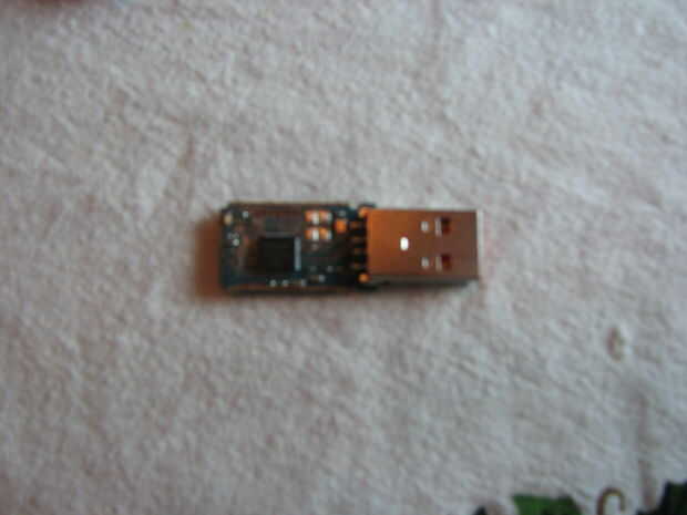 Aclaró este recinto de la impulsión del flash del USB por empujar el conector USB en un bloque de arcilla y un poco de PVC tubo sobre ella y luego Vierta el tubo de llenado con resina transparente.