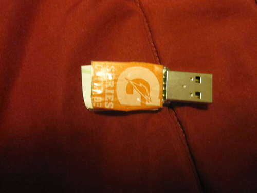 Aclaró este recinto de la impulsión del flash del USB por empujar el conector USB en un bloque de arcilla y un poco de PVC tubo sobre ella y luego Vierta el tubo de llenado con resina transparente.