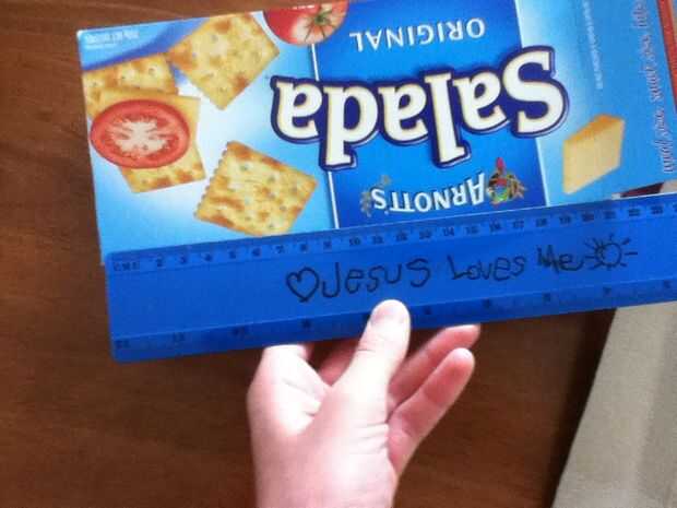 Lo primero que hice (después de abrir cuidadosamente la parte superior de la caja de la galleta con un plano-palas-cuchillo) fue medido la longitud, anchura y profundidad de la caja de la galleta (longitud 21,5 cm, ancho 10 cm y 8 cm de profundidad). Luego, en otro pedazo de cartón que corté de una vieja caja de cereal, gobernara dos rectángulos utilizando las dimensiones de la caja de la galleta (el primer rectángulo, 21,5 cm de largo y 10 cm de ancho) (el segundo rectángulo, 21,5 cm de largo y 8 cm de ancho). Luego corté dos rectángulos hacia fuera. El trabajo de estos dos rectángulos es dar soporte a la caja de galletas así que si alguno (excepto yo) agarra la caja no se swish (como una caja vacía medio) sentirse como si aún contenía galletas.