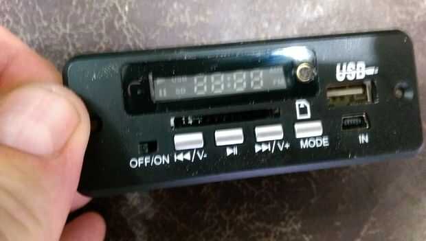 compré este pequeño individuo fuera de eBay por trece dólares. Estoy más que impresionado con él. No sólo es Bluetooth, pero juega las tarjetas SD y unidades flash USB y carga la fuente de energía a través del mini USB en el frente! Que permite todo a ser escondido todo perfectamente dentro.