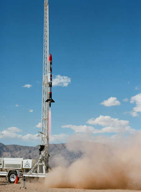 Foto de arriba es el vehículo de lanzamiento de Prospector-17 que cuenta con un marco de aire todo compuesto y a LOX / etanol 500 libras motor construir por los estudiantes en California State University Long Beach. Esa foto fue tomada por mi cámara Pentax 645 y activa inalámbricamente por el despegue de los vehículos.