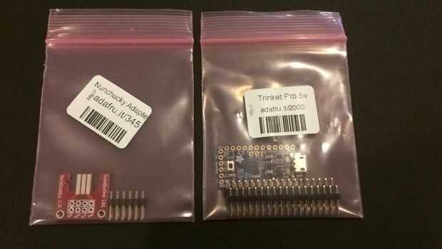 Todo lo que necesitas para este proyecto es una baratija Pro y una tarjeta de interfaz de Nunchuky de adafruit.com. De hecho, además de para soldar la placa de interfaz de Nunchuky a la baratija de Pro, no otros de soldadura es necesario haciendo de este un trabajo de soldadura de 5 a 10 minutos y una gran introducción al proyecto de soldadura para niños y adultos aprender sobre electrónica. Tenemos kits preprogramados disponibles así que usted puede construir este convertidor USB Wii Nunchuk a ratón muy rápidamente sin tener que preocuparse por programar... a soldar! De todos modos, el convertidor USB Wii Nunchuk-a-Mouse proporciona la interfaz para traducir los comandos de señalización Wii I2C del controlador Nunchuk por lo que parece un ratón USB al ordenador. El botón "Z" en el Nunchuk se traduce en un botón de todo para el ratón y el botón de "C" en el Nunchuk se traduce en un botón de clic derecho del ratón. El joystick se usa para mover el cursor del ratón en la pantalla.