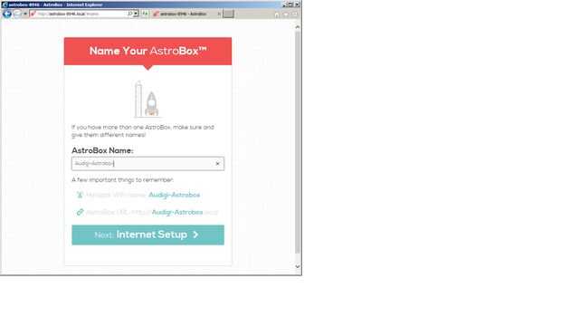En este paso el nombre su Astrobox y anota la URL de conexión de Astrobox.