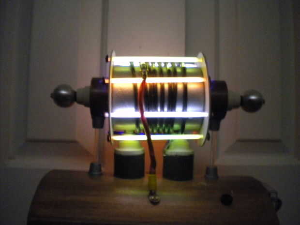 Aquí es un proyecto que utiliza energía de radiofrecuencia generada por una bobina de Tesla pequeña, bipolar para energizar un anillo de lámparas de cátodo frío, multicolor. Como con cualquier dispositivo de alta tensión, tenga precaución y buen juicio cuando utilice.