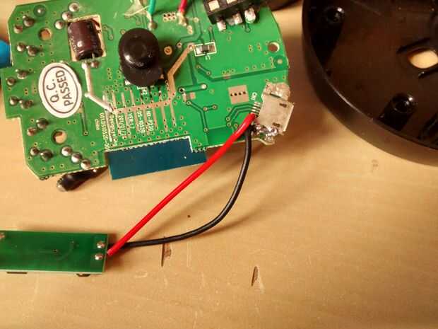 Este podría ser un poco complicado si no estás acostumbrado a él. Use su voltímetro para detectar la entrada de 5v en el PCB. Entrada comprobar el micro USB es una buena idea, como la conexión a tierra (negro) es la caja de metal y los + 5v en uno de los pines de entrada. Luego suelde los dos cables del lado de recepción.