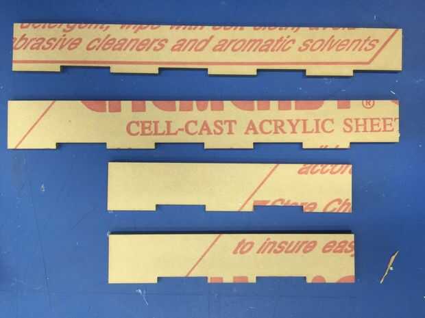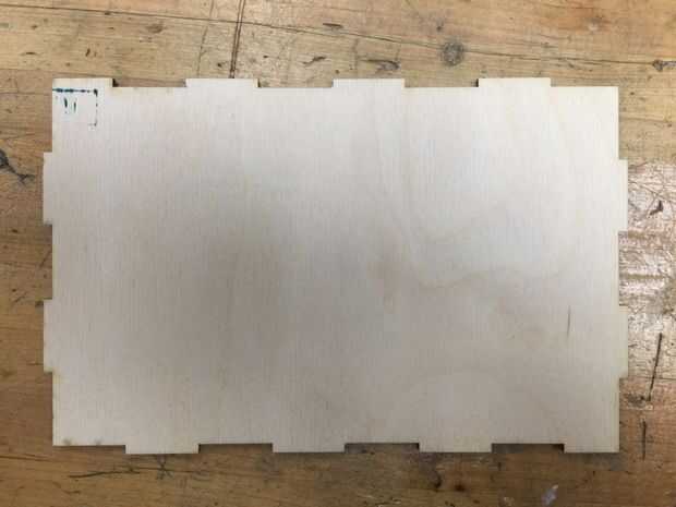 2. La parte superior e inferior de la caja está hecha de madera contrachapada de 1/8 pulgadas, los lados se hacen del acrílico claro de 1/8 pulgadas azul teñido.