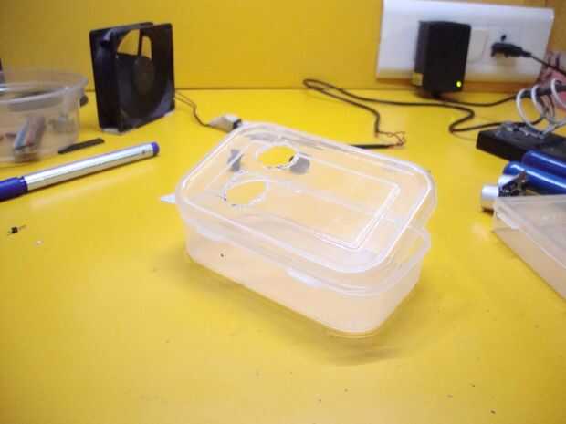 El primer paso es preparar su gabinete y para hacer agujeros para todas las partes. Para el tipo de caja, puede utilizar cualquier caja pequeña de madera o metal pero la mejor opción puede ser utilizar un plástico uno. Antes de seleccionar el tamaño, asegúrese de que todos los componentes encajen fácilmente.
