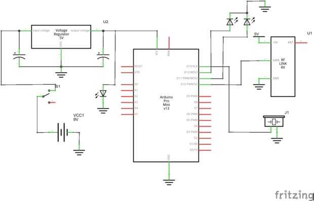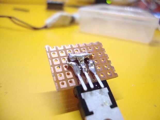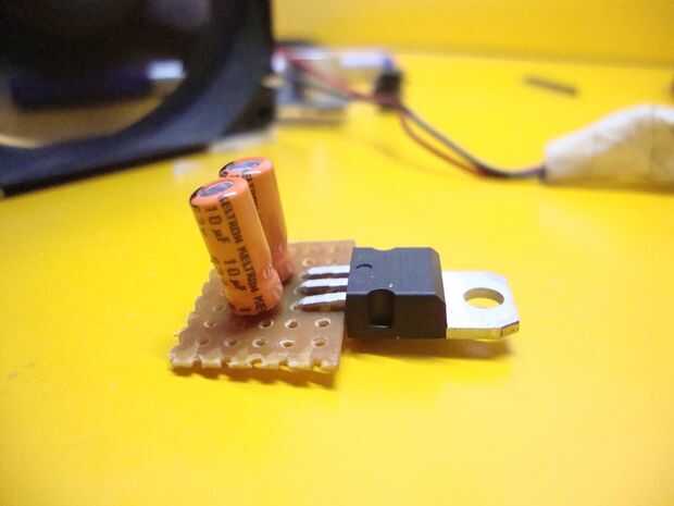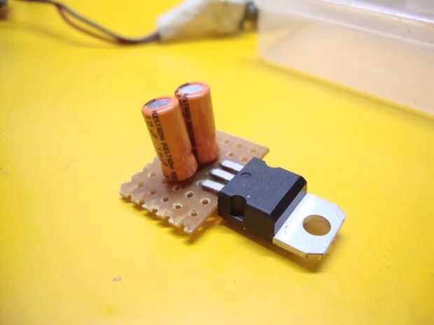 Consulte el esquema anterior y todo de acuerdo con lo de la soldadura. El circuito usa un regulador de 7805 voltaje de bajo costo con un par de condensadores de filtro.
