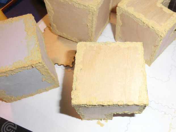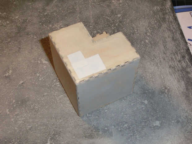 Soy de un perfeccionista, así que cubrí los agujeros (aunque muy pequeños) con relleno de madera. Entonces usted tendrá que lijar todas las piezas y redondear las esquinas. Oscurecimiento de las piezas es opcional, pero le dará un mejor resultado. No olvide cubrir los agujeros de los enchufes y el interruptor con la cinta para no cubrir de pintura.