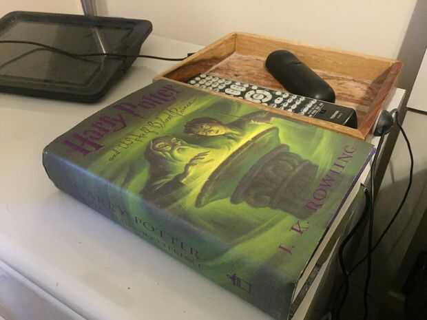 Opté por usar el libro 6 de la serie de Harry Potter. Esto es porque es mi favorita de ellos y me gusta el arte en la tapa. Además añade al sentido de la magia ya que carga inalámbrica es básicamente que arte.